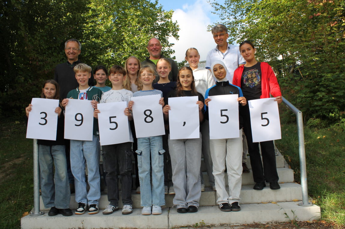 Ein stolzes Ergebnis erzielte der siebte Jahrgang beim Sponsorenlauf für Kinder in Burkina Faso: 3958,55 Euro kamen zusammen! Dieser Betrag wurde nun feierlich an den Hüllhorster Verein ,,Starke Kinder e.V.“ übergeben.
